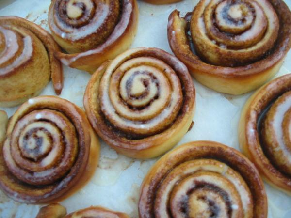 - En una olla y sobre la llama lenta, calentamos todos los ingredientes del decorado, derritiéndolos lentamente. Cuando se forme una pasta semi líquida, verter en forma de zigzag sobre los rollos de canela ya horneados.